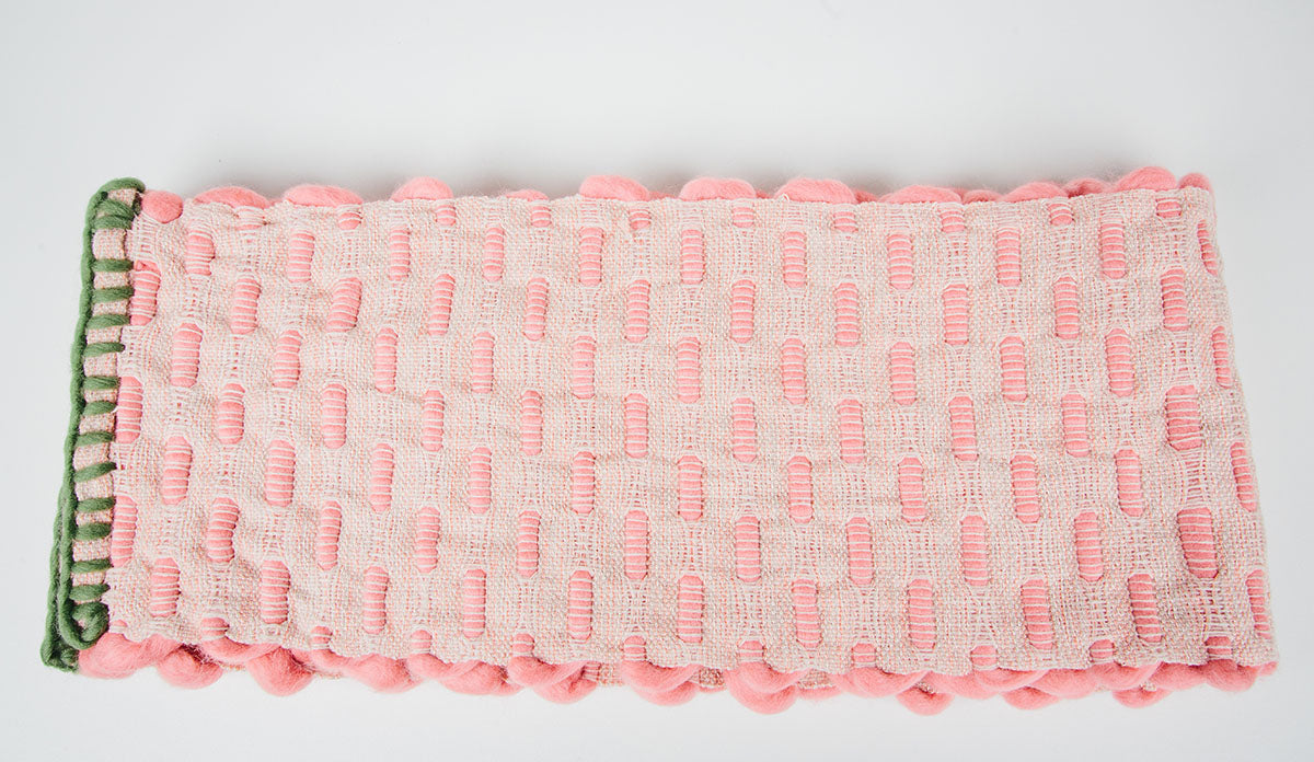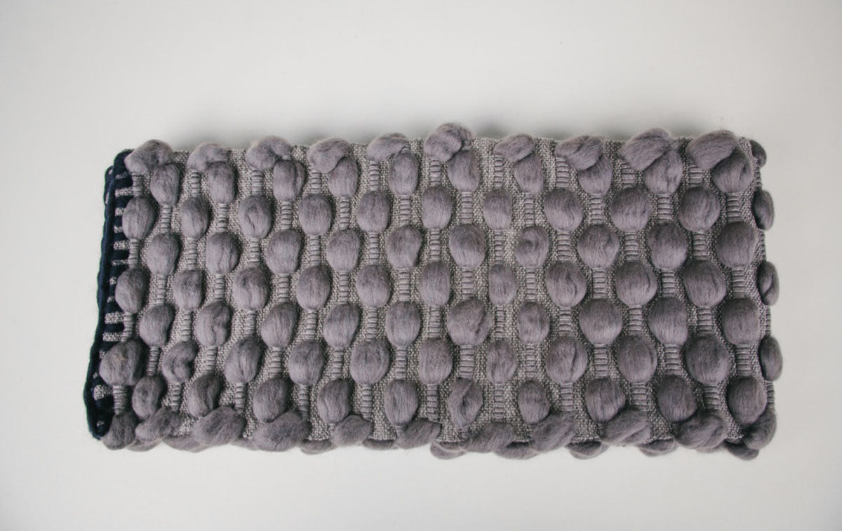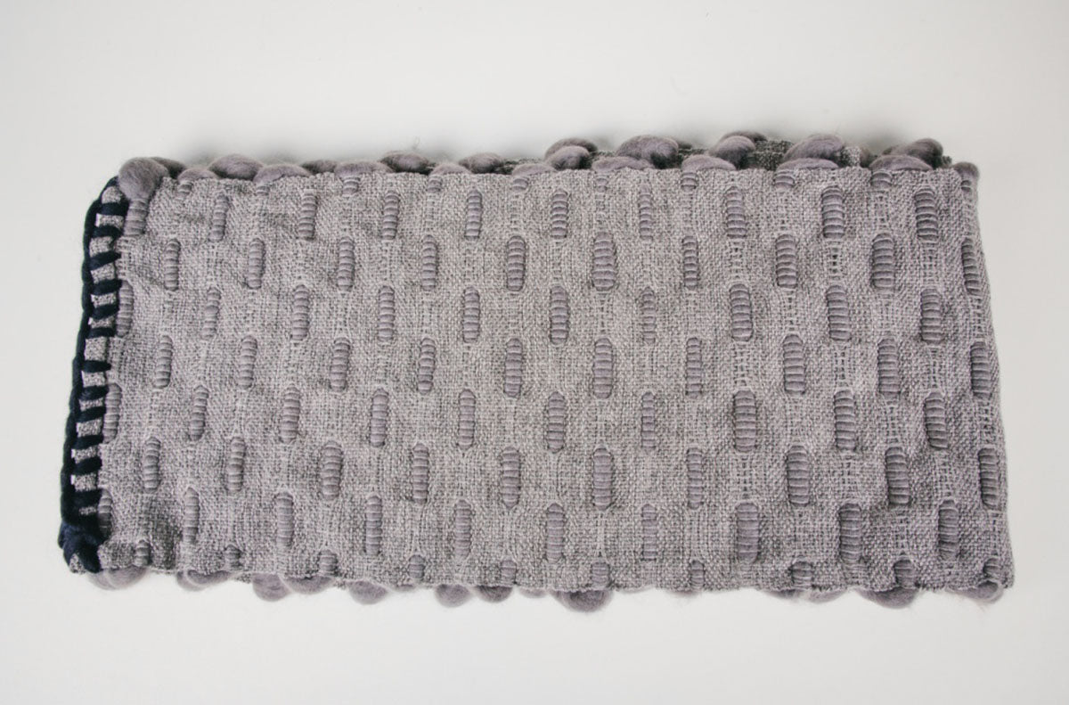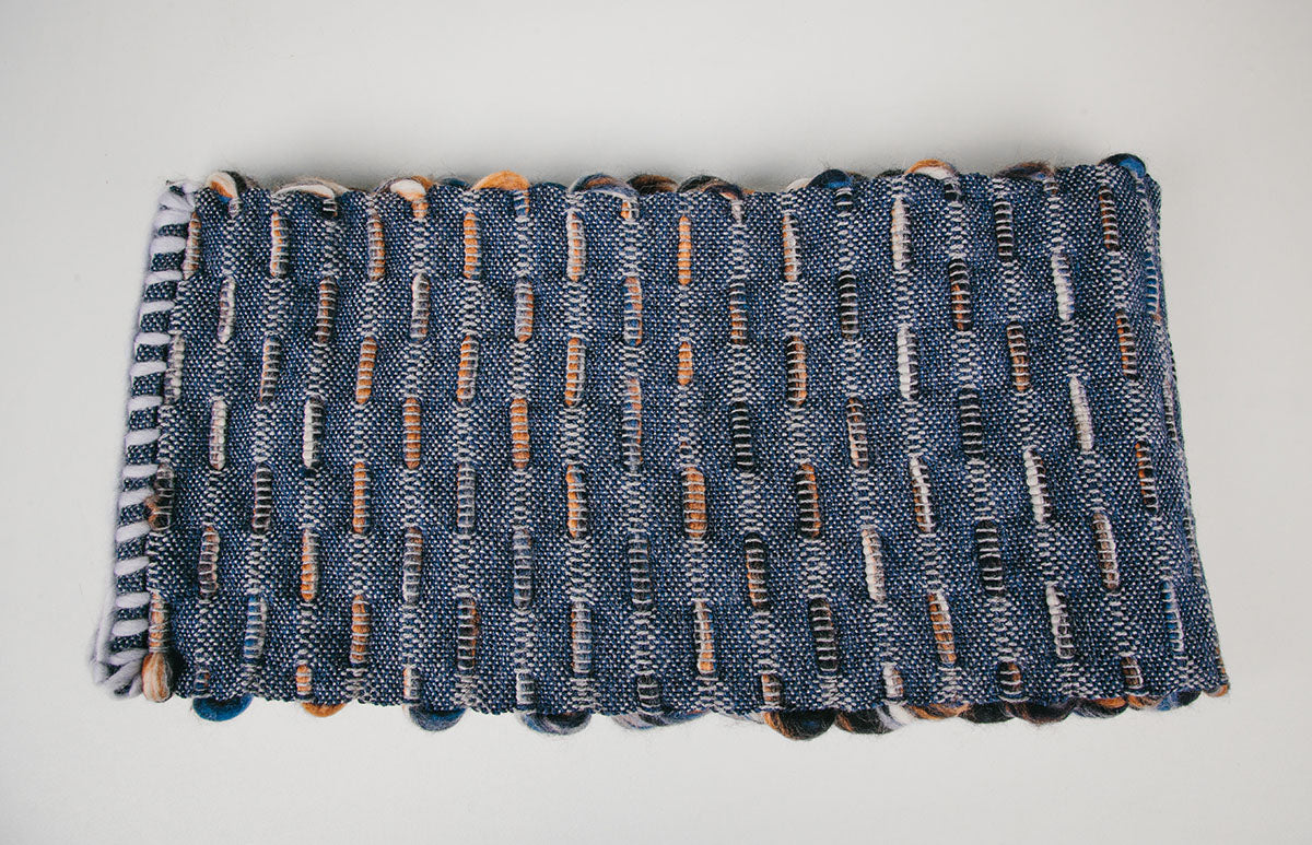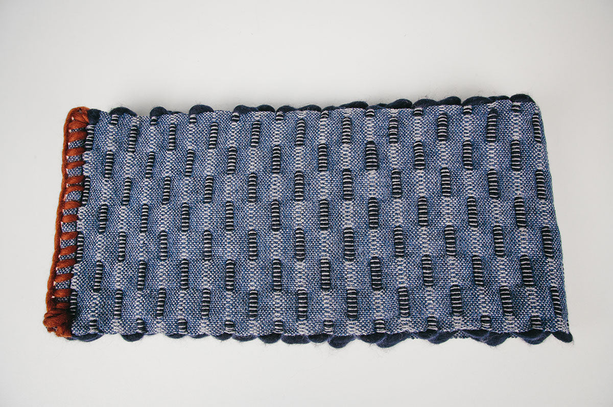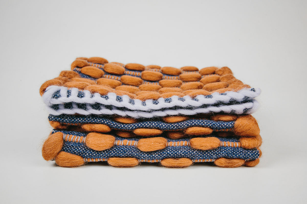 Our 'Ripples' scarf is 100% handwoven in a pattern evoking images of ripples in the sand. Combining weaving and felting techniques and materials, we mix merino wool and cotton yarns together to add depth, hand feed 20m lengths of wool roving through the warp to add texture, hand wash the finished piece to create our unique ripple effect followed by a blanket stitch in a contrasting colour for a finished look. Each step in our process reflects our commitment to craftsmanship and time-honoured weaving traditions. We also believe in sourcing all our materials from within the UK to minimise our carbon footprint and use natural fibres whenever possible as we aim to cultivate a more sustainable practice.
