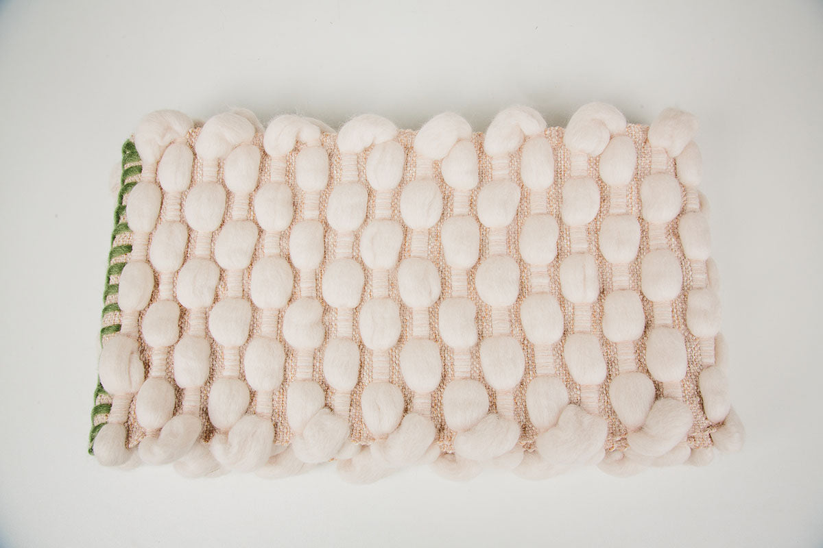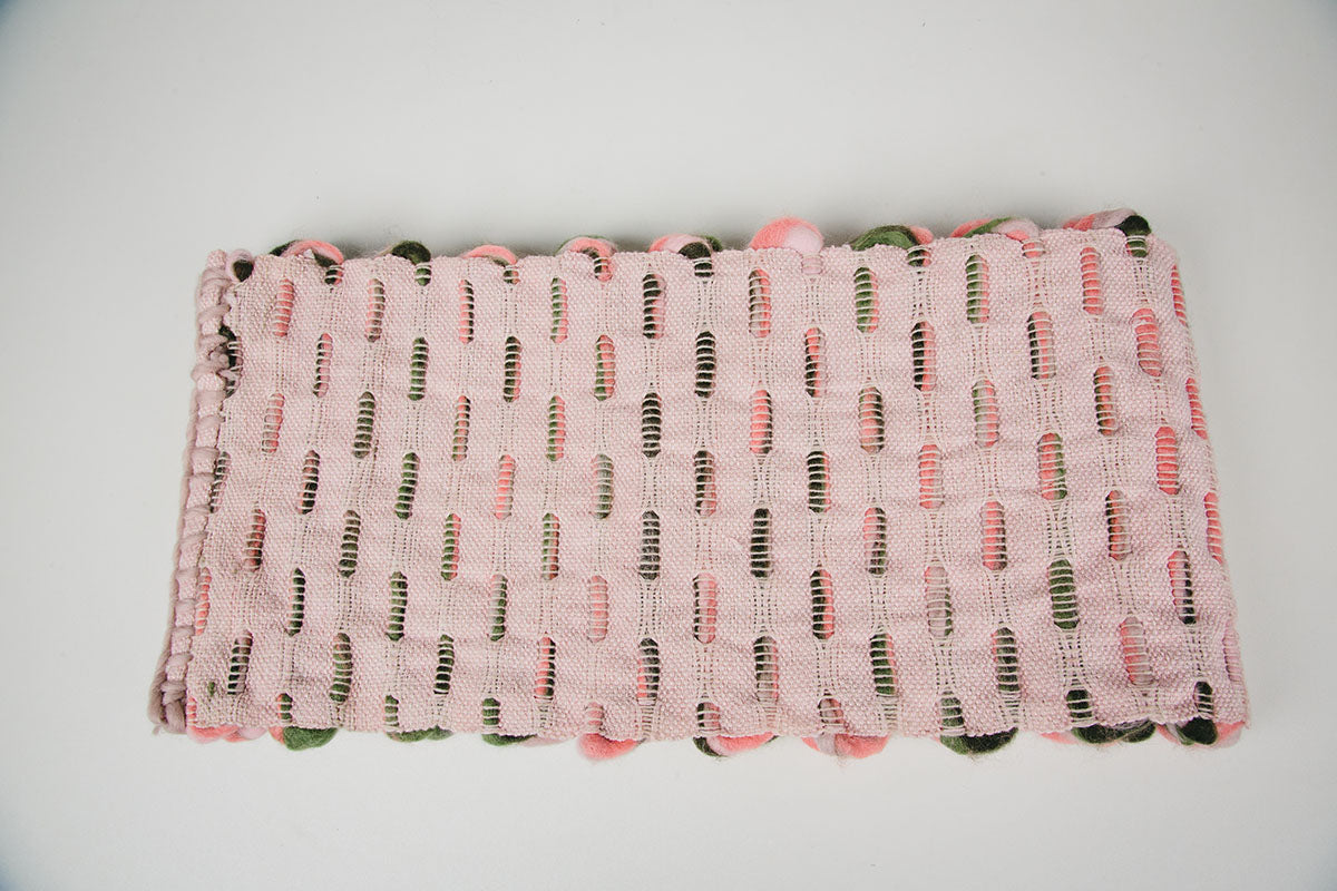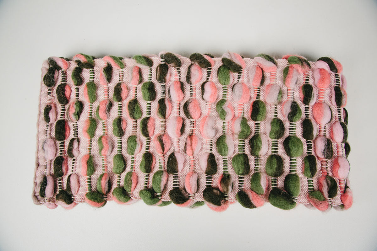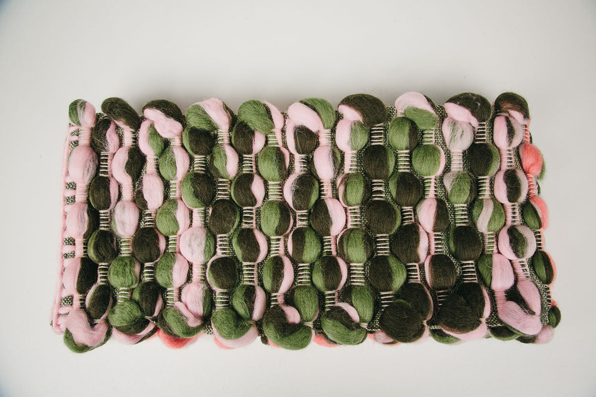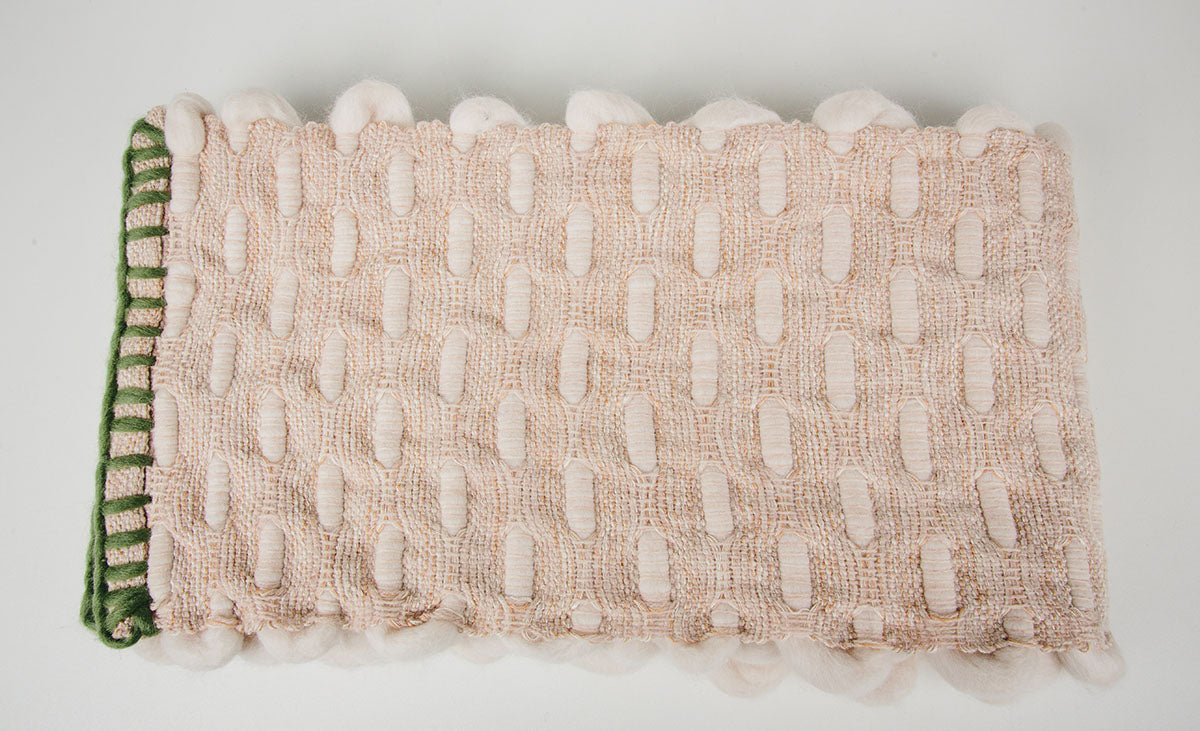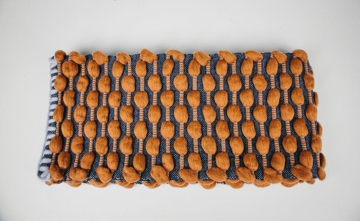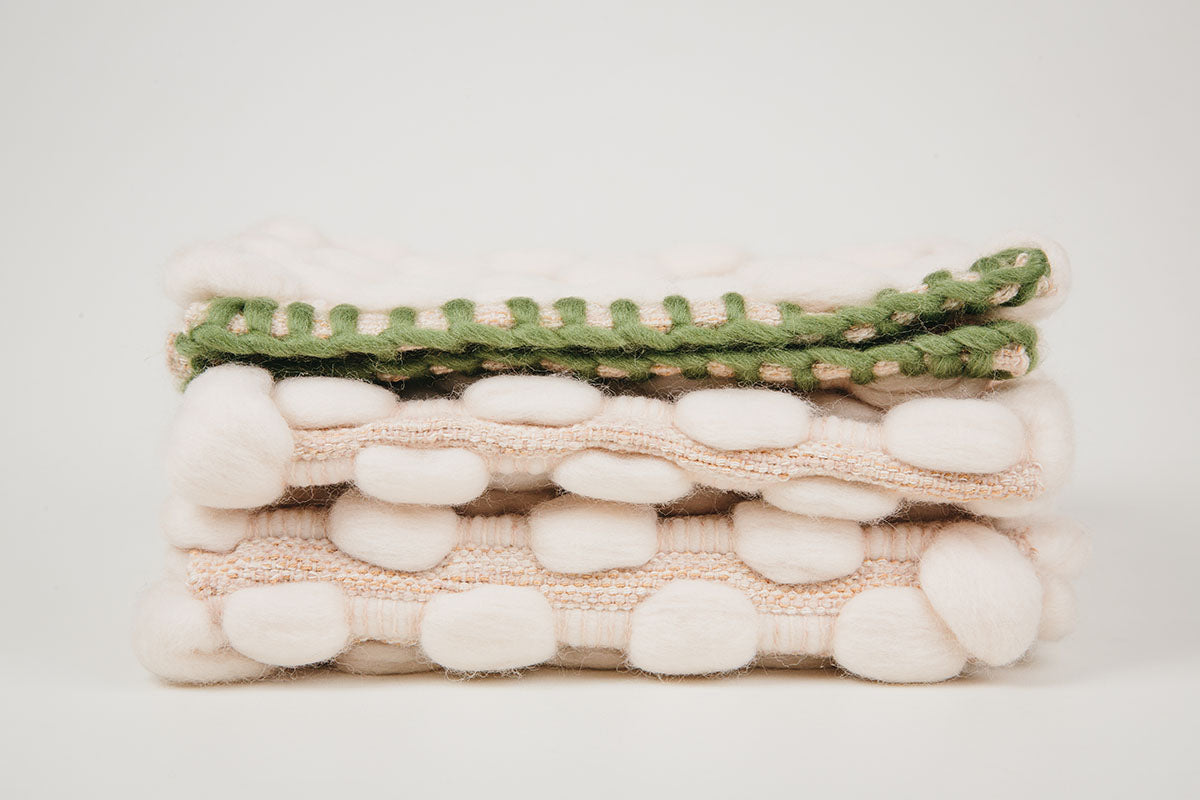 Our 'Ripples' scarf is 100% handwoven in a pattern evoking images of ripples in the sand. Combining weaving and felting techniques and materials, we mix merino wool and cotton yarns together to add depth, hand feed 20m lengths of wool roving through the warp to add texture, hand wash the finished piece to create our unique ripple effect followed by a blanket stitch in a contrasting colour for a finished look. Each step in our process reflects our commitment to craftsmanship and time-honoured weaving traditions. We also believe in sourcing all our materials from within the UK to minimise our carbon footprint and use natural fibres whenever possible as we aim to cultivate a more sustainable practice.